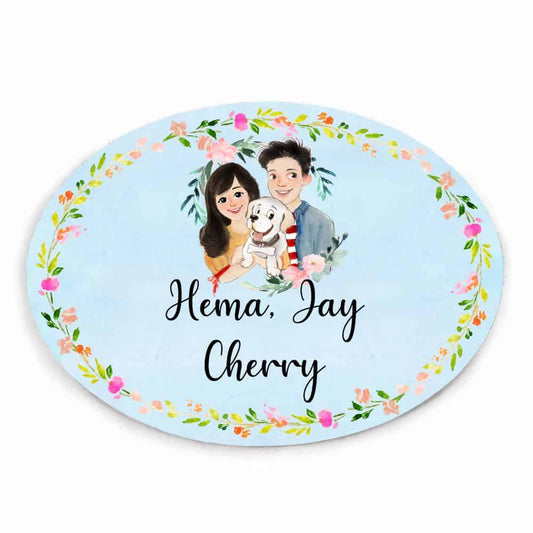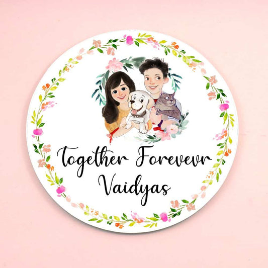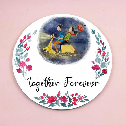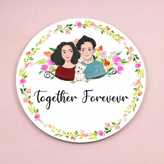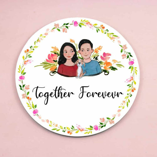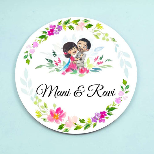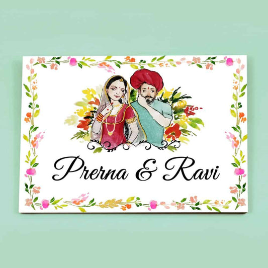 Handpainted Personalized Illustration Bark Nameplate - Couple in Rain