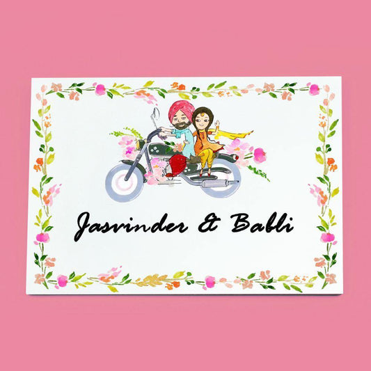 Handpainted Personalized Illustration Bark Nameplate - Couple in Rain
