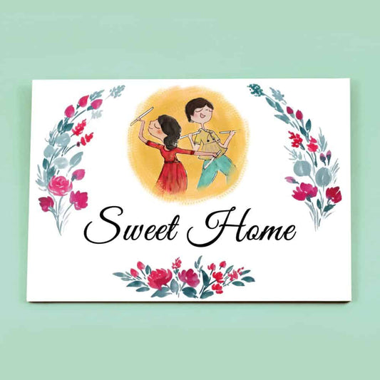 Handpainted Personalized Illustration Bark Nameplate - Couple in Rain