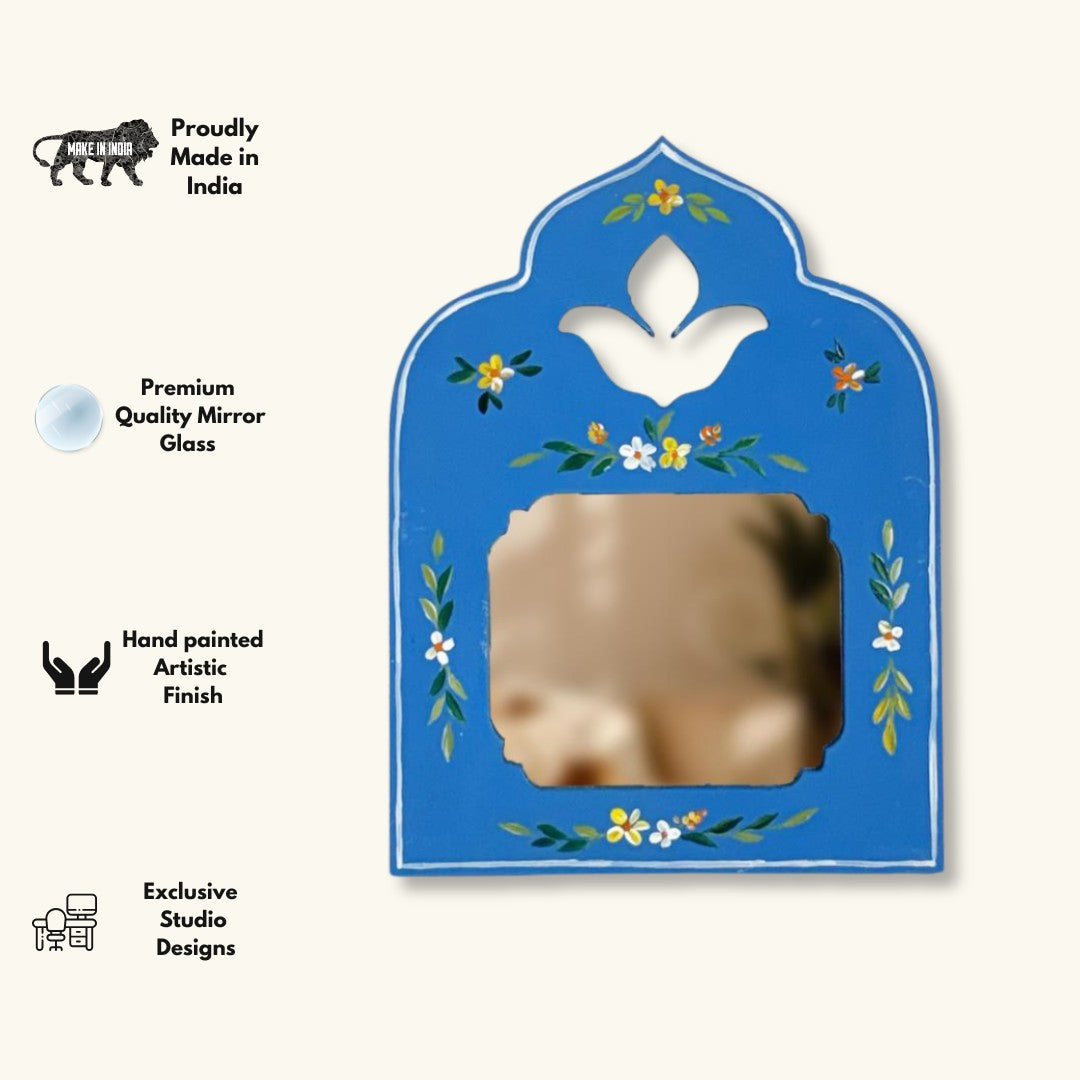 Calm blue tones paired with delicate floral accents make this mirror a soothing and graceful wall accent.