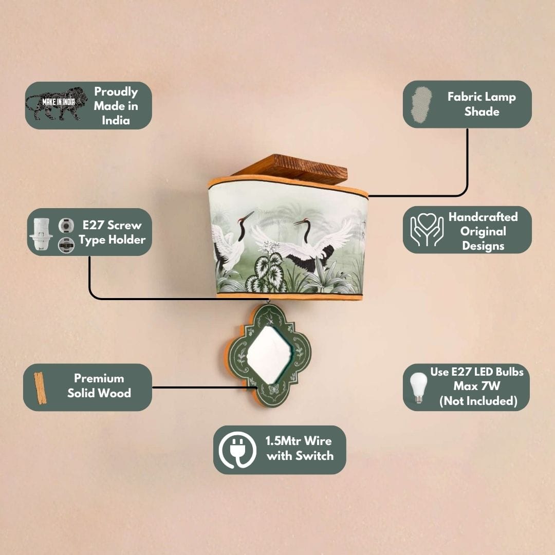 A handcrafted wall lamp featuring graceful cranes in a tranquil wetland scene, creating a storytelling focal point. Best styled on feature walls or layered with mirrors.